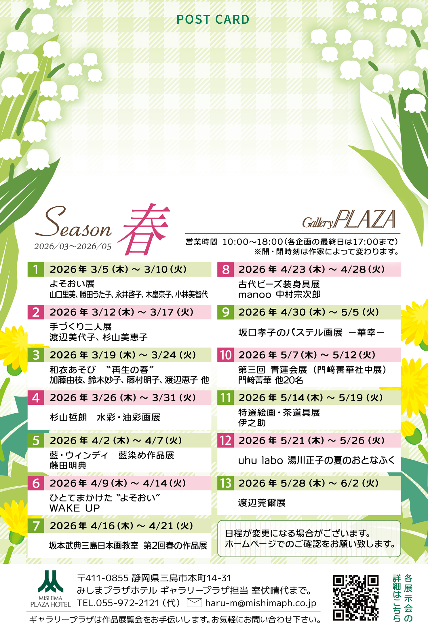 ギャラリープラザ開催予定の展示内容です。